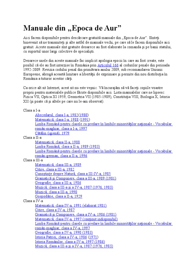 vizitati articolul complet aici : https://ro.wikipedia.org/wiki/Epoca_de_Aur_(Rom%C3%A2nia) Când țăranii aduceau în piețe marfă de sezon, imediat se formau cozi. Manuale și imagini manuale 3d, folosite de 5. Din toamna lui `90 urma să meargă la şcoală, să schimbe uniforma de șoim al patriei cu cea de pionier.